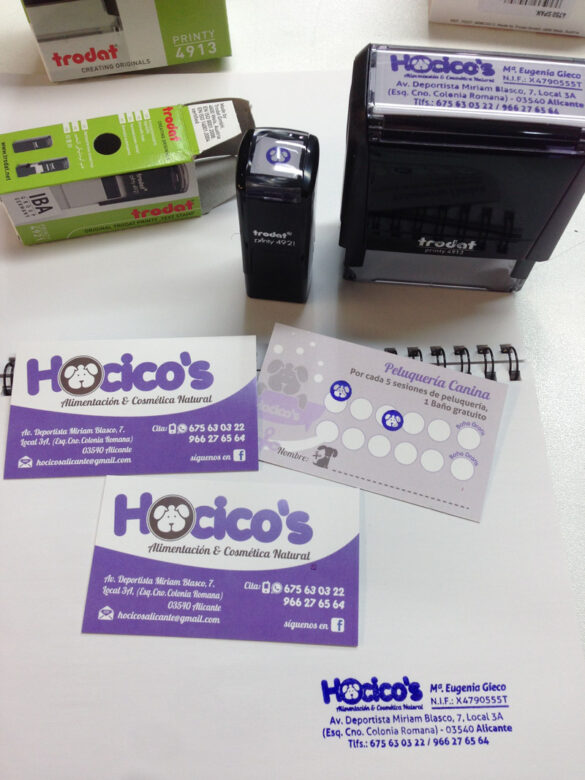 Proyecto de diseño e impresión de papelería y sellos de caucho personalizados para esta marca.